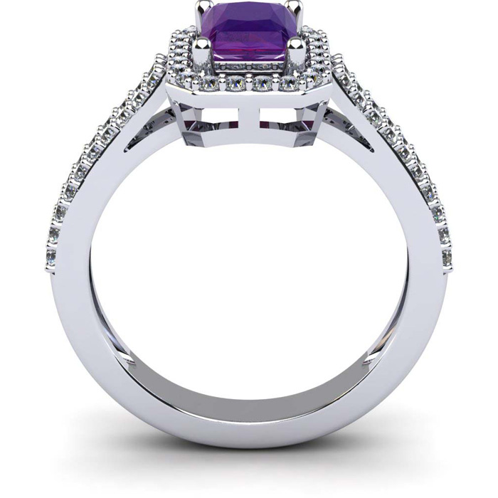 1 1/3 Carat Amethyst and Halo Diamond Ring In 14 Karat White Gold