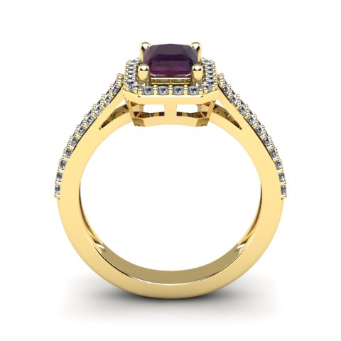 1 1/3 Carat Amethyst and Halo Diamond Ring In 14 Karat Yellow Gold