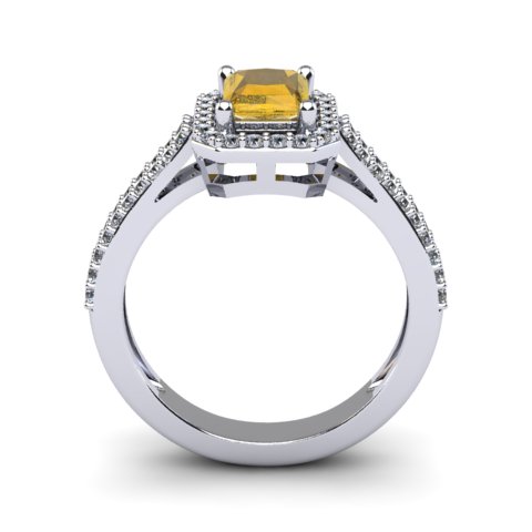 1 1/3 Carat Citrine and Halo Diamond Ring In 14 Karat White Gold