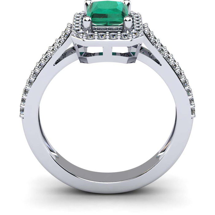 1 1/3 Carat Emerald and Halo Diamond Ring In 14 Karat White Gold