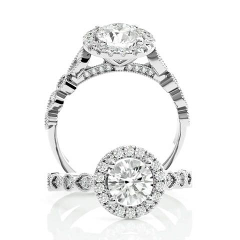 1 1/3 Carat Halo Diamond Engagement Ring In 14 Karat White Gold