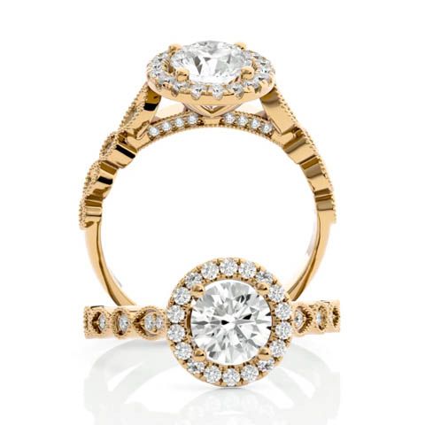1 1/3 Carat Halo Diamond Engagement Ring In 14 Karat Yellow Gold