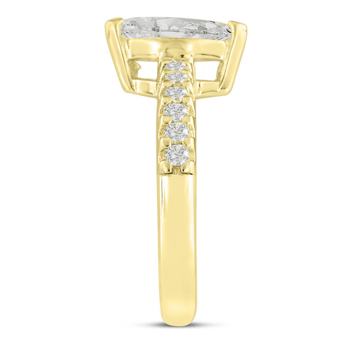 For a classically beautiful diamond engagement ring, try this engagement ring crafted in 14 karat yellow gold. This ring boasts a 1 carat marquise shape center diamond that has been clarity enhanced with accent diamonds along the shank. The ring has a total diamond weight of 1 1/2 carats. There are 13 diamonds total in I-J color and I1-I2 clarity.