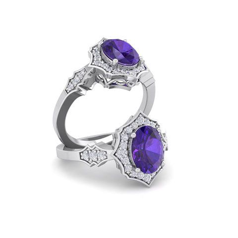 1 1/3 Carat Oval Shape Amethyst and Diamond Ring In 14 Karat White Gold