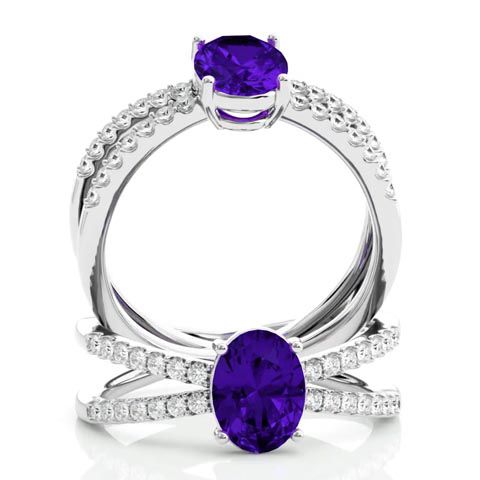 1 1/3 Carat Oval Shape Amethyst and Diamond Ring In 14 Karat White Gold