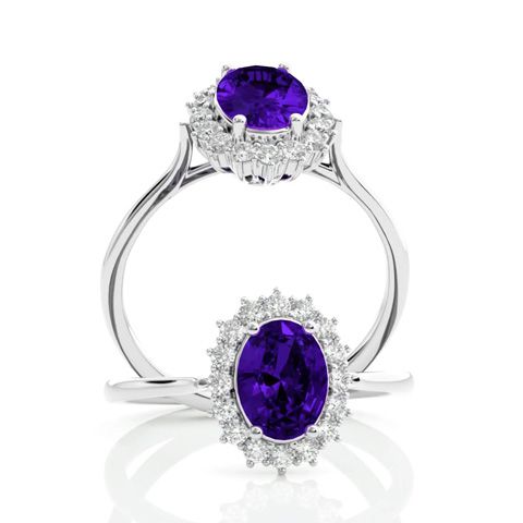1 1/3 Carat Oval Shape Amethyst and Halo Diamond Ring In 14 Karat White Gold