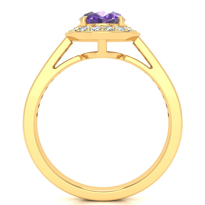 1 1/3 Carat Oval Shape Amethyst and Halo Diamond Ring In 14 Karat Yellow Gold