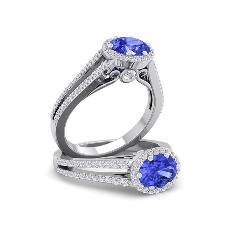 1 1/3 Carat Oval Shape Antique Tanzanite and Halo Diamond Ring In 14 Karat White Gold