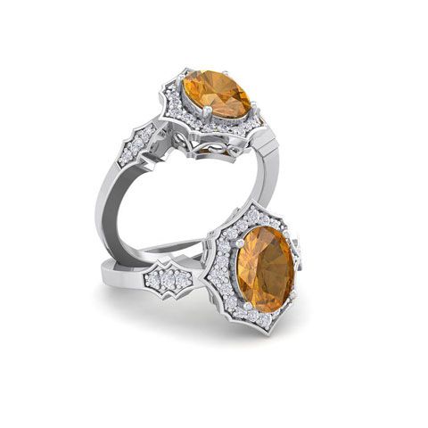 1 1/3 Carat Oval Shape Citrine and Diamond Ring In 14 Karat White Gold