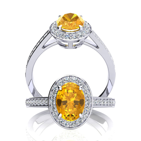 1 1/3 Carat Oval Shape Citrine and Halo Diamond Ring In 14 Karat White Gold