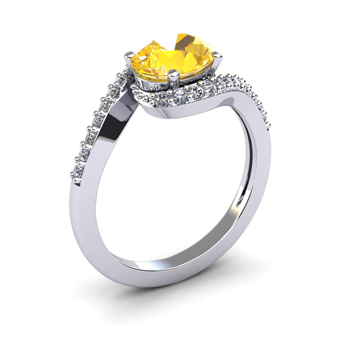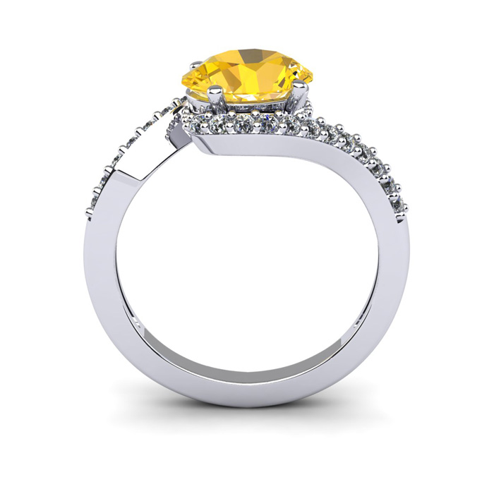 1 1/3 Carat Oval Shape Citrine and Halo Diamond Ring In 14 Karat White Gold