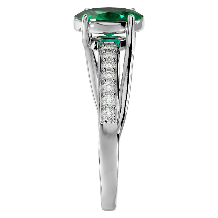 1 1/3 Carat Oval Shape Emerald and Diamond Ring In 14 Karat White Gold