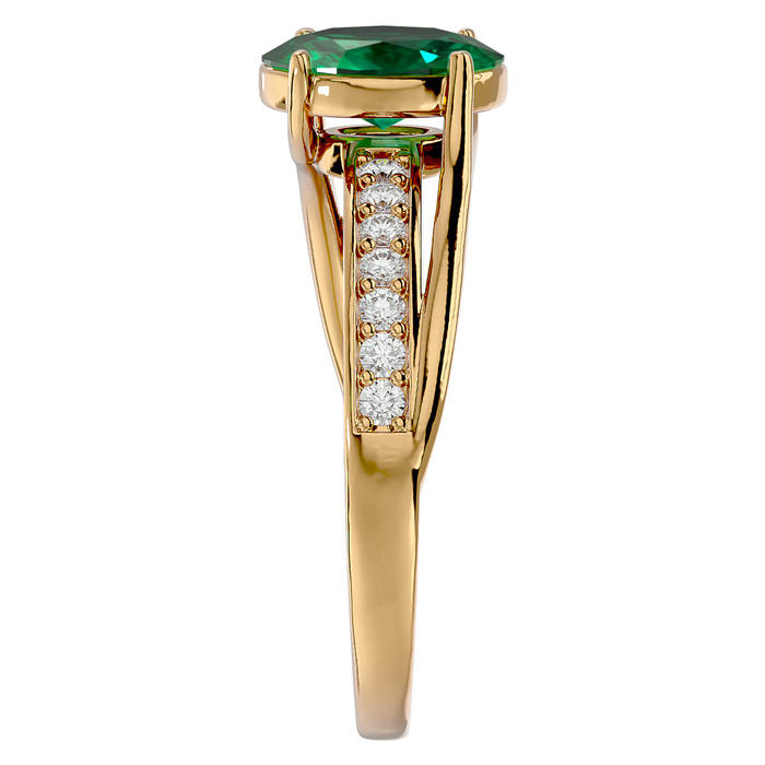 1 1/3 Carat Oval Shape Emerald and Diamond Ring In 14 Karat Yellow Gold