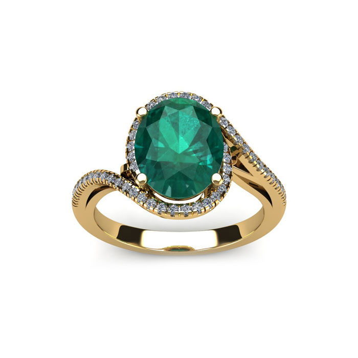1 1/3 Carat Oval Shape Emerald and Halo Diamond Ring In 14 Karat Yellow Gold