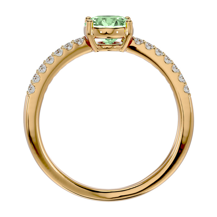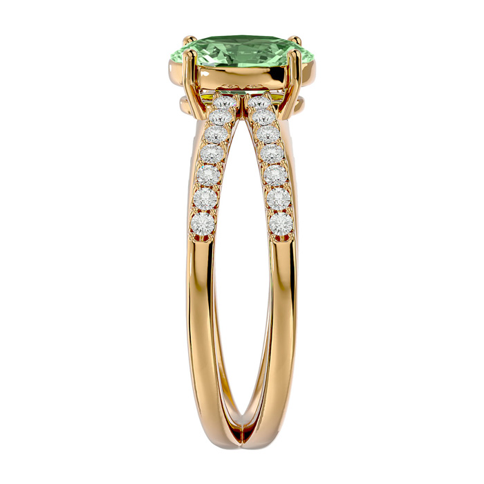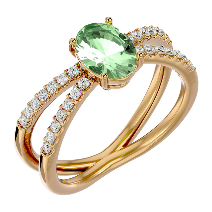 1 1/3 Carat Oval Shape Green Amethyst and Diamond Ring In 14 Karat Yellow Gold