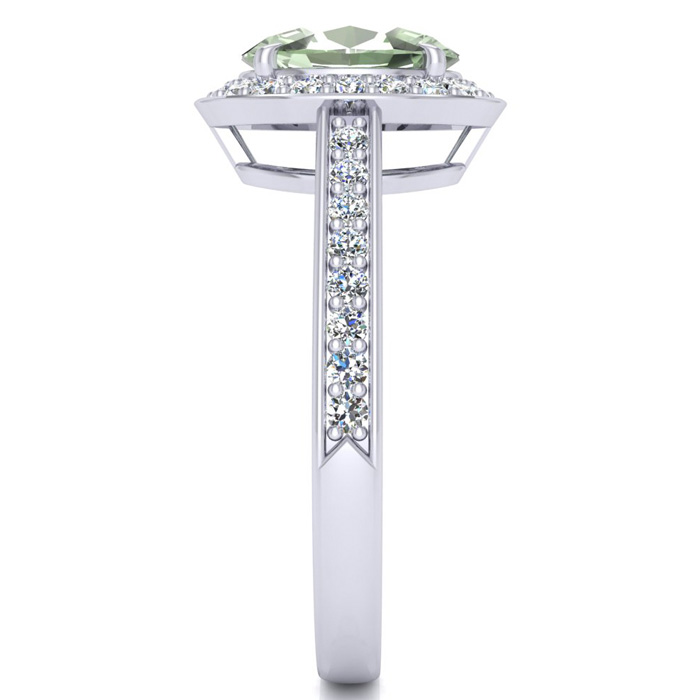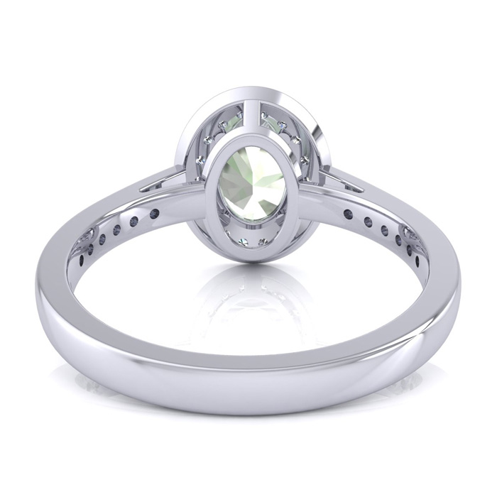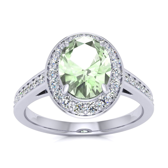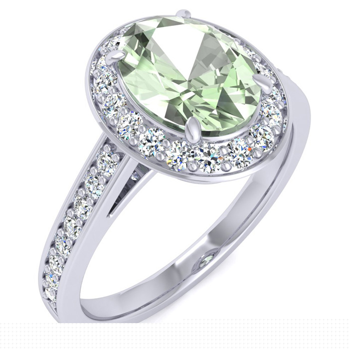 1 1/3 Carat Oval Shape Green Amethyst and Halo Diamond Ring In 14 Karat White Gold