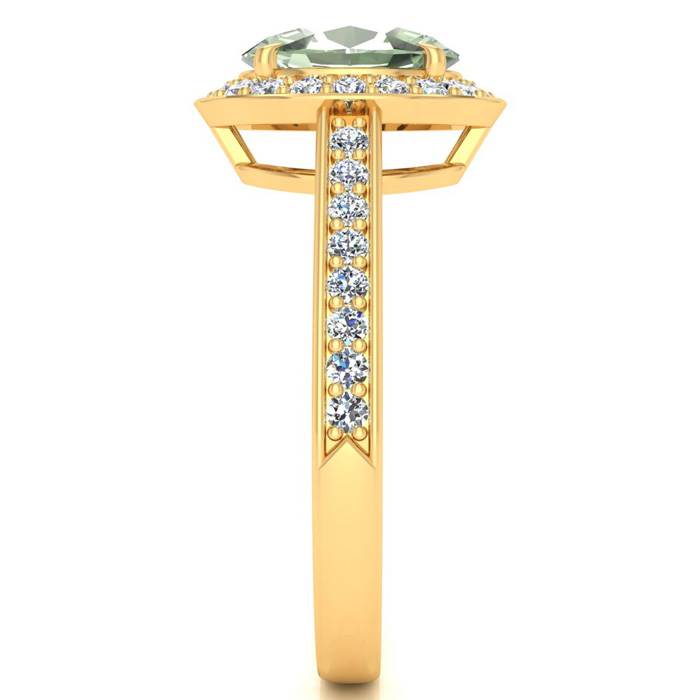 1 1/3 Carat Oval Shape Green Amethyst and Halo Diamond Ring In 14 Karat Yellow Gold
