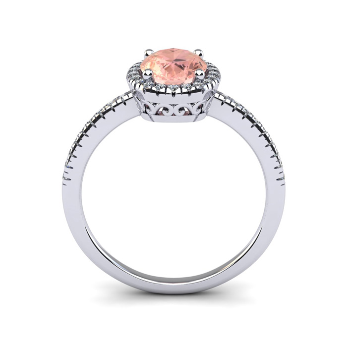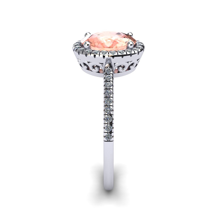 1 1/3 Carat Oval Shape Morganite and Halo Diamond Ring In 14 Karat White Gold, Size 5