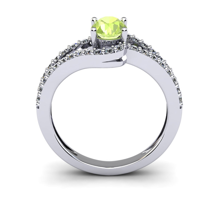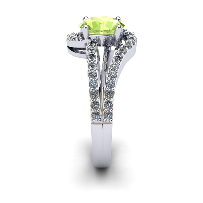 1 1/3 Carat Oval Shape Peridot and Fancy Diamond Ring In 14 Karat White Gold