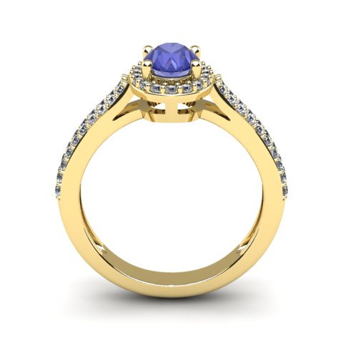 1 1/3 Carat Oval Shape Tanzanite and Halo Diamond Ring In 14 Karat Yellow Gold
