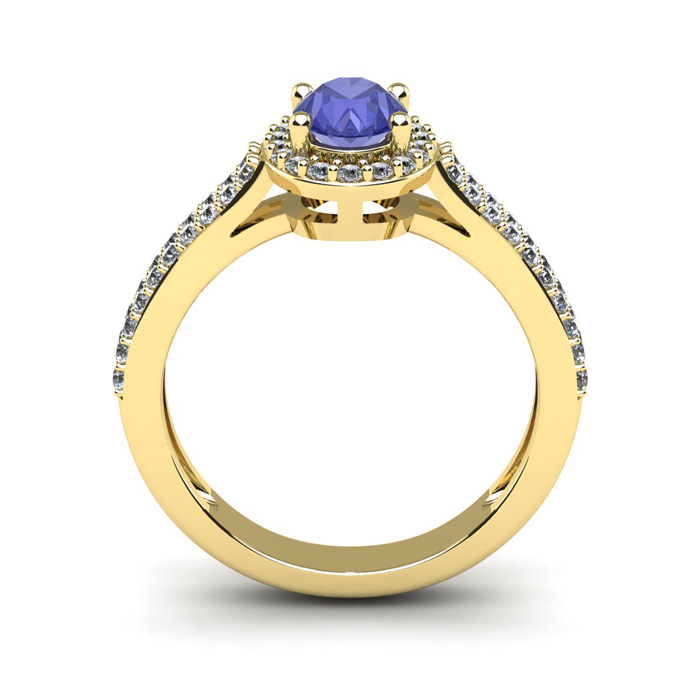 1 1/3 Carat Oval Shape Tanzanite and Halo Diamond Ring In 14 Karat Yellow Gold