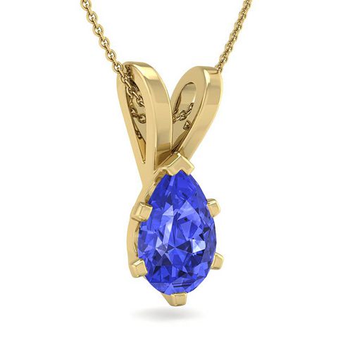 1 1/3 Carat Pear Shape Tanzanite Necklace In 14K Yellow Gold Over Sterling Silver, 18 Inches