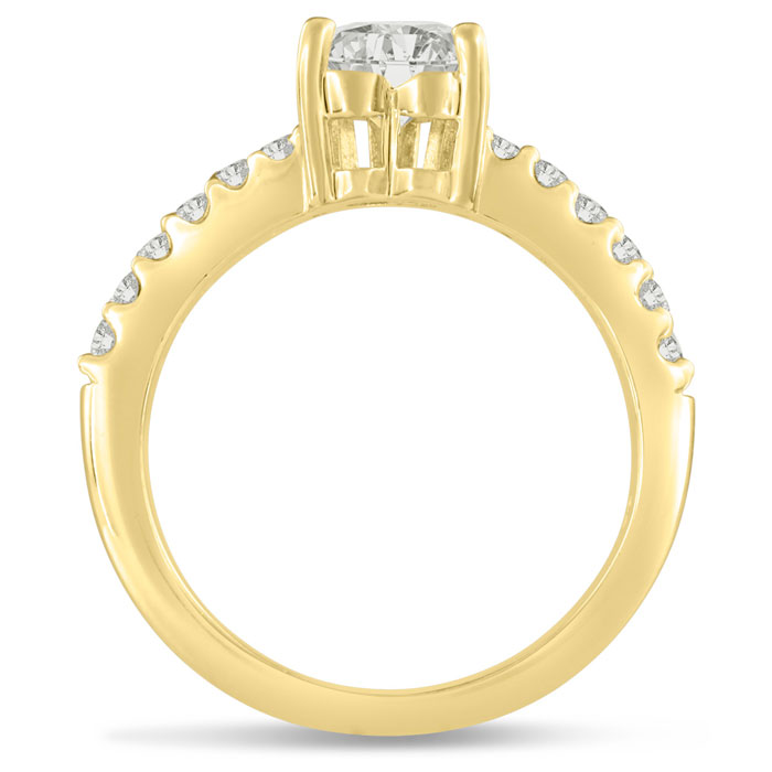 For a classically beautiful diamond engagement ring, try this engagement ring crafted in 14 karat yellow gold. This ring boasts a 1 carat heart shape clarity enhanced center diamond, with accent diamonds along the band. The ring has a total diamond weight of 1.36 carats. There are 13 diamonds total in I-J color and I1-I2 clarity.