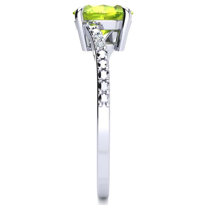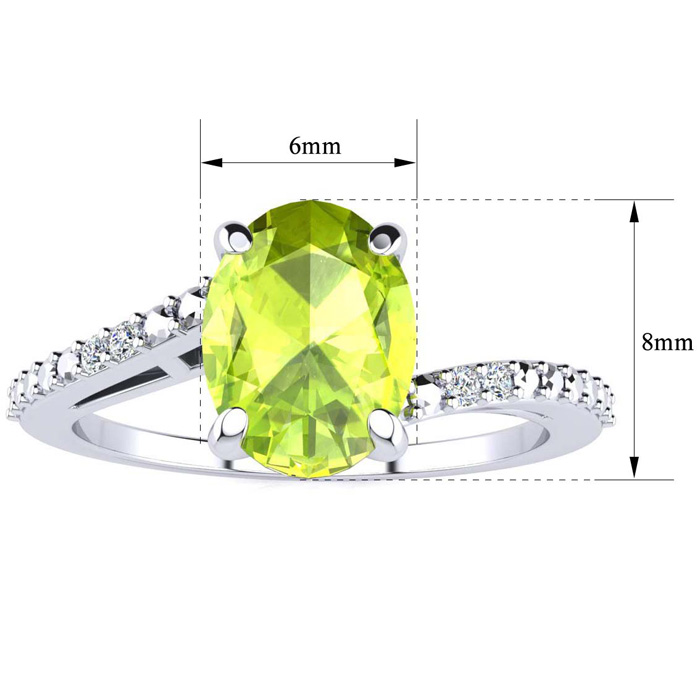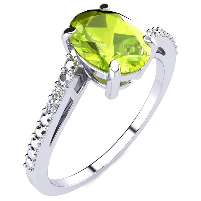 1 1/3ct Oval Shape Peridot and Diamond Ring in 10k White Gold