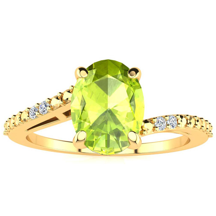 1 1/3ct Oval Shape Peridot and Diamond Ring in 10k Yellow Gold