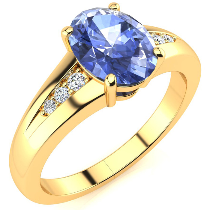 1 1/3ct Oval Shape Tanzanite and Diamond Ring in 10k Yellow Gold