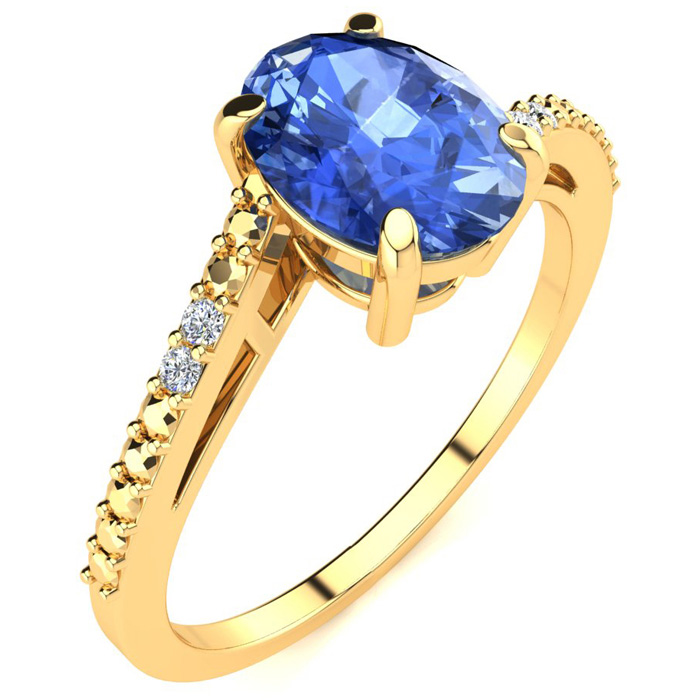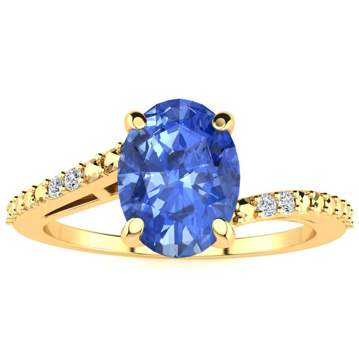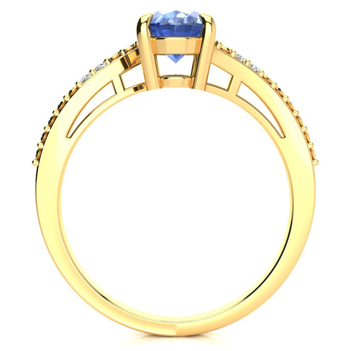 1 1/3ct Oval Shape Tanzanite and Diamond Ring in 10k Yellow Gold