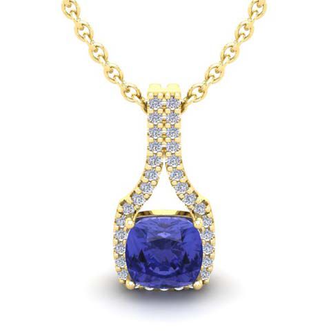 1 1/4 Carat Cushion Cut Tanzanite and Classic Halo Diamond Necklace In 14 Karat Yellow Gold, 18 Inches