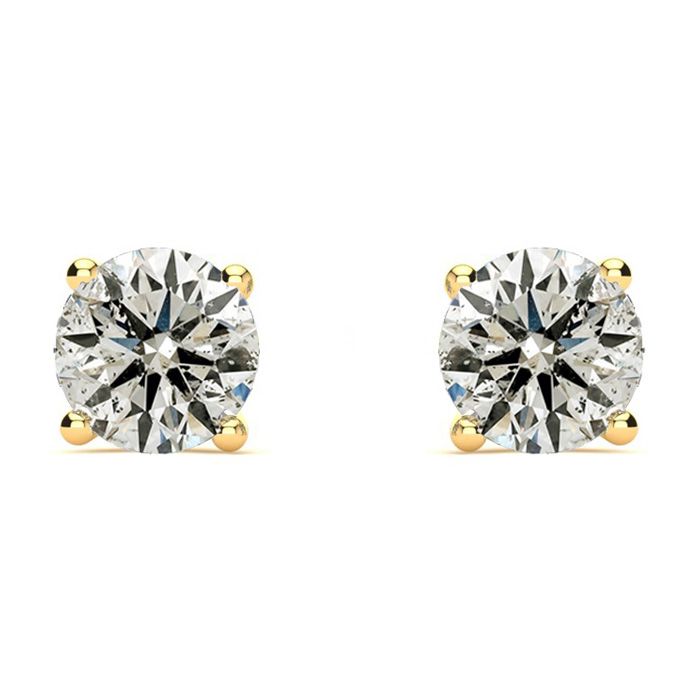 You won't believe this price on these outstanding 1 1/4ct round brilliant cut diamond stud earrings in 14k yellow gold with 1/4 screw backs. The diamonds are J-K in color and clarity enhanced I2-I3 clarity. Totally amazing diamond stud earrings at a great price!