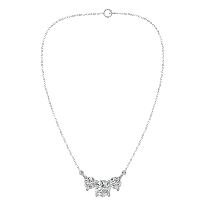 1 1/4 Carat Diamond Three Stone Necklace In 14 Karat White Gold, 18 Inches