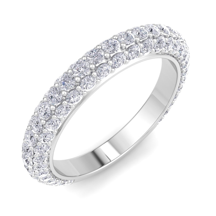 This stunning matching band ring features 91 diamonds in I-J color, I1-I2 clarity. Total carat weight is approximately 1 1/4 carats. Ring top measures approximately 3mm. This ring is in 14 karat white gold.