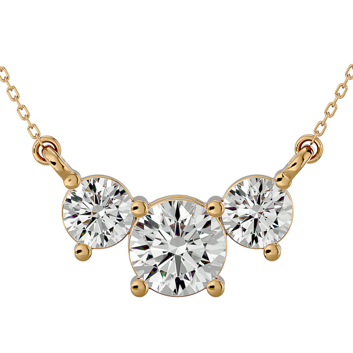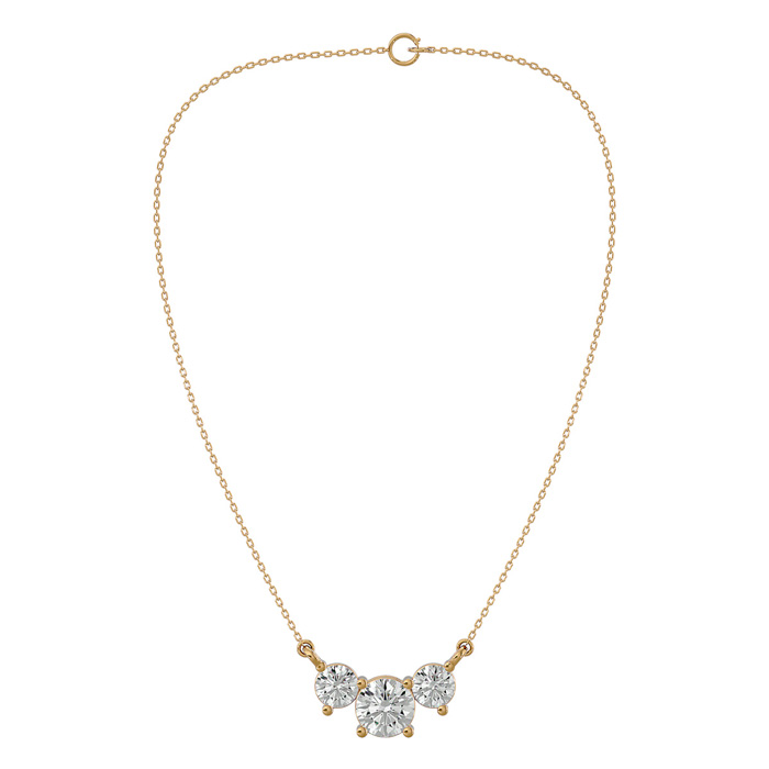 1 1/4 Carat Moissanite Three Stone Necklace In 14 Karat Yellow Gold, 18 Inches