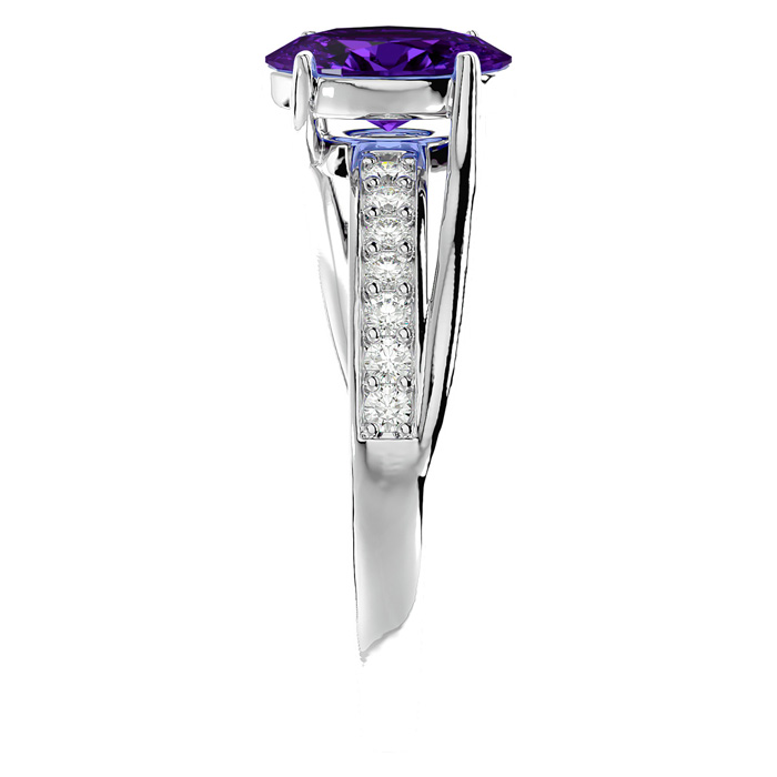 1 1/4 Carat Oval Shape Amethyst and Diamond Ring In 14 Karat White Gold