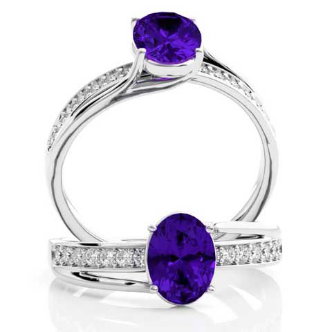 1 1/4 Carat Oval Shape Amethyst and Diamond Ring In 14 Karat White Gold