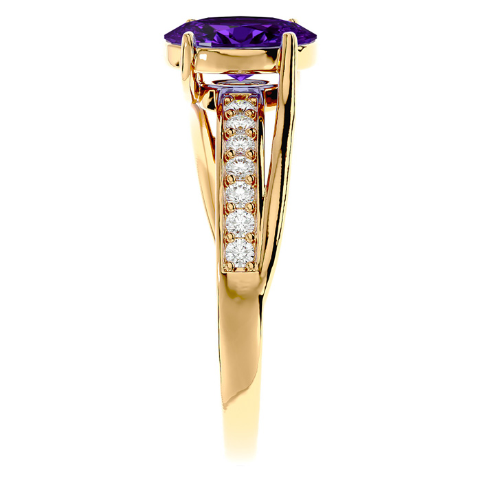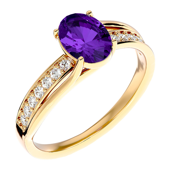 1 1/4 Carat Oval Shape Amethyst and Diamond Ring In 14 Karat Yellow Gold
