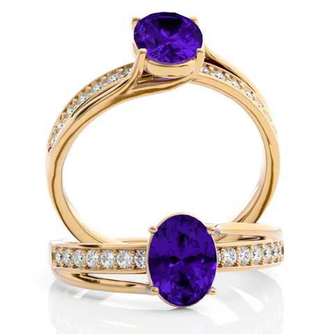 1 1/4 Carat Oval Shape Amethyst and Diamond Ring In 14 Karat Yellow Gold