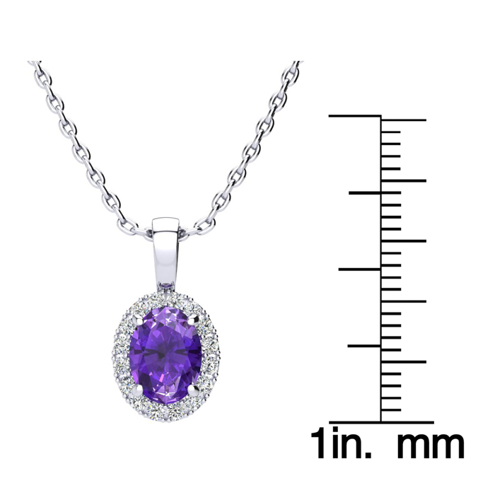 1 1/4 Carat Oval Shape Amethyst and Halo Diamond Necklace In 14 Karat White Gold With 18 Inch Chain