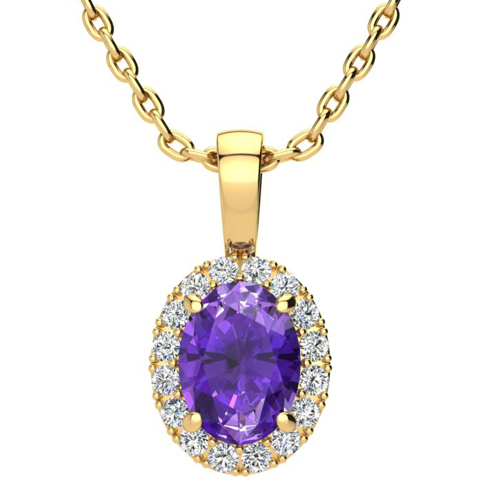 1 1/4 Carat Oval Shape Amethyst and Halo Diamond Necklace In 14 Karat Yellow Gold With 18 Inch Chain