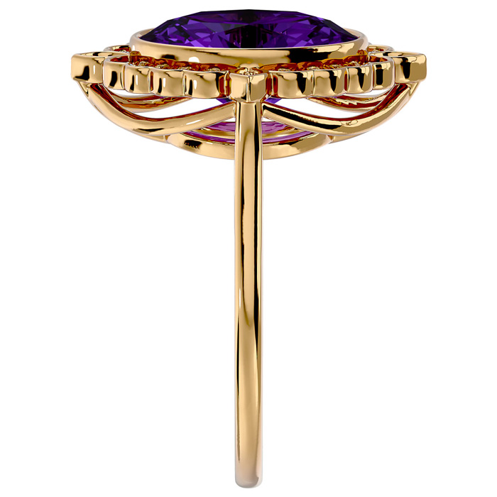 Retrograde Birthstones™ 1 1/4 Carat Oval Shape Amethyst and Halo Diamond Ring In 14 Karat Yellow Gold