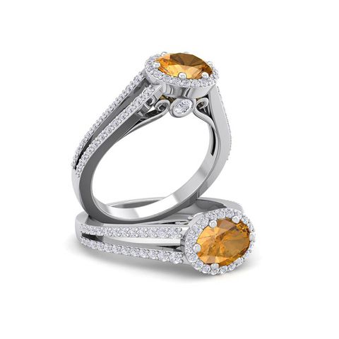 1 1/4 Carat Oval Shape Antique Citrine and Halo Diamond Ring In 14 Karat White Gold
