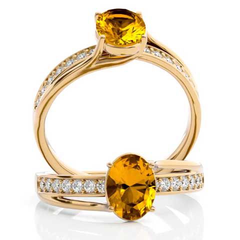1 1/4 Carat Oval Shape Citrine and Diamond Ring In 14 Karat Yellow Gold