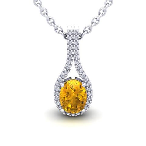 1 1/4 Carat Oval Shape Citrine and Halo Diamond Necklace In 14 Karat White Gold, 18 Inches