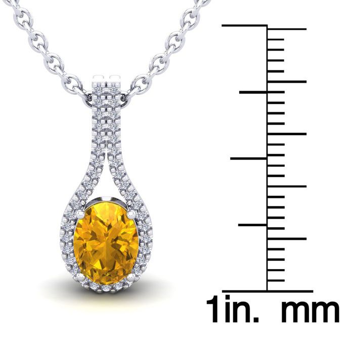 1 1/4 Carat Oval Shape Citrine and Halo Diamond Necklace In 14 Karat White Gold, 18 Inches