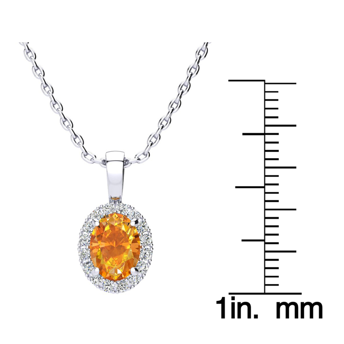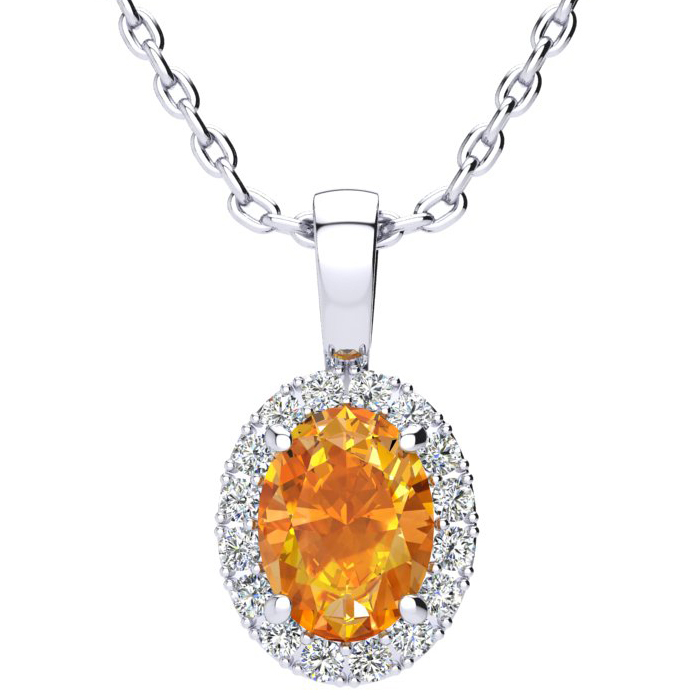 1 1/4 Carat Oval Shape Citrine and Halo Diamond Necklace In 14 Karat White Gold With 18 Inch Chain