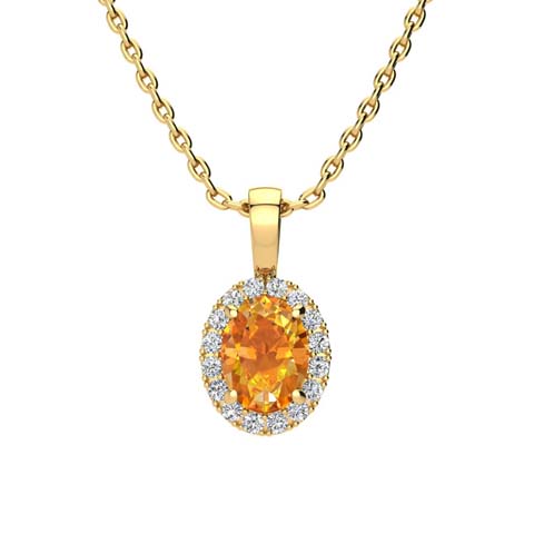 1 1/4 Carat Oval Shape Citrine and Halo Diamond Necklace In 14 Karat Yellow Gold With 18 Inch Chain