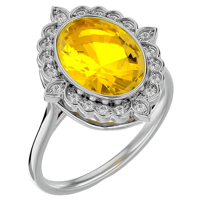 Retrograde Birthstones™ 1 1/4 Carat Oval Shape Citrine and Halo Diamond Ring In 14 Karat White Gold